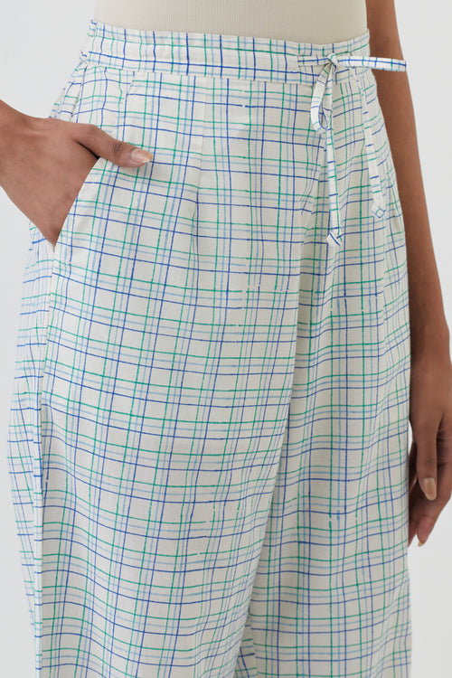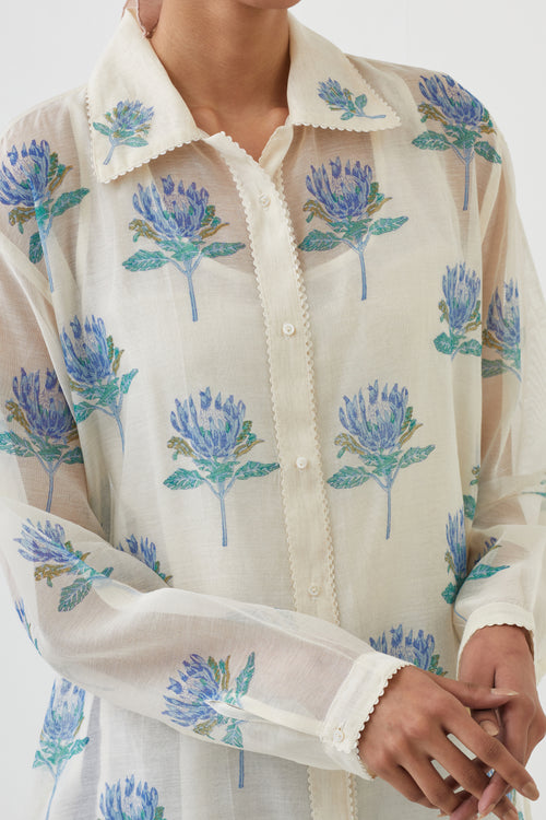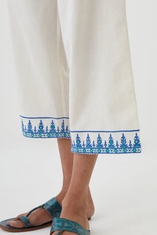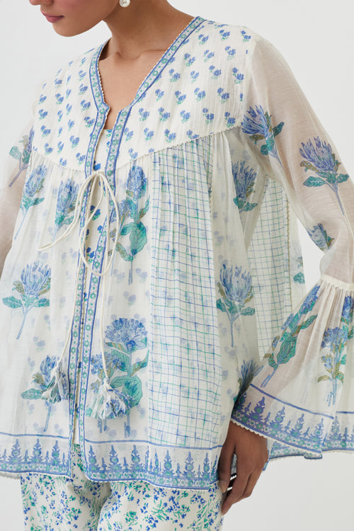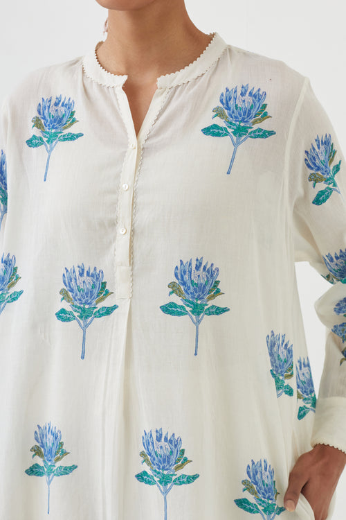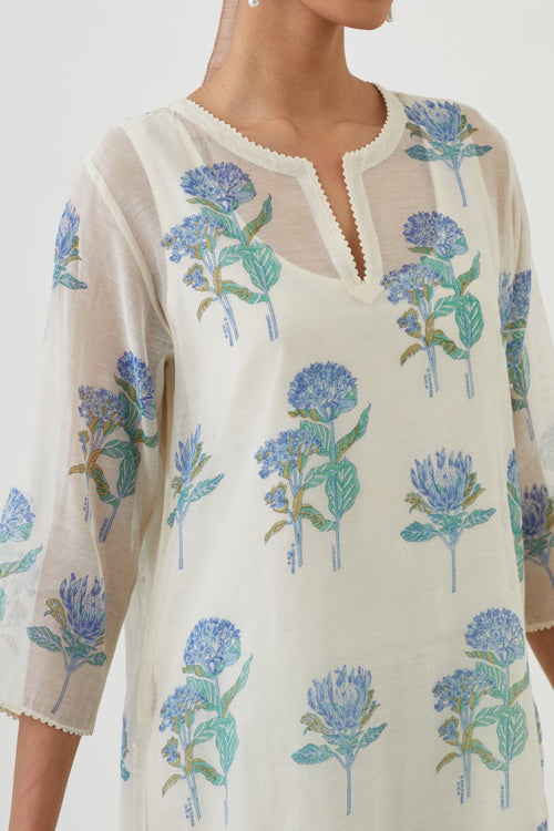 Blue colored hand block printed Cotton Chanderi dupatta.