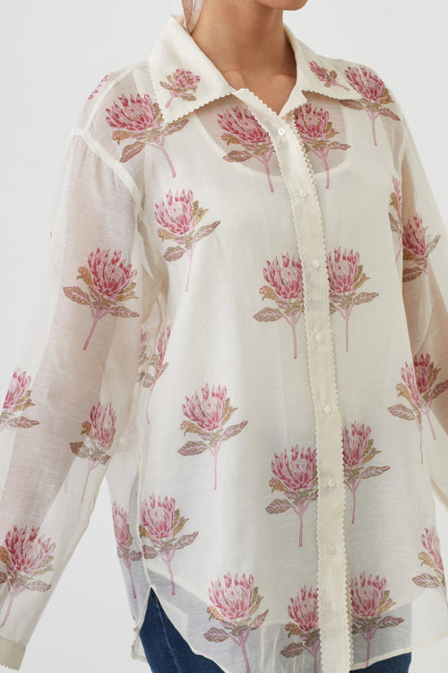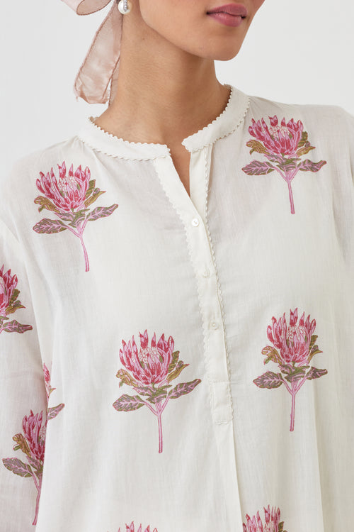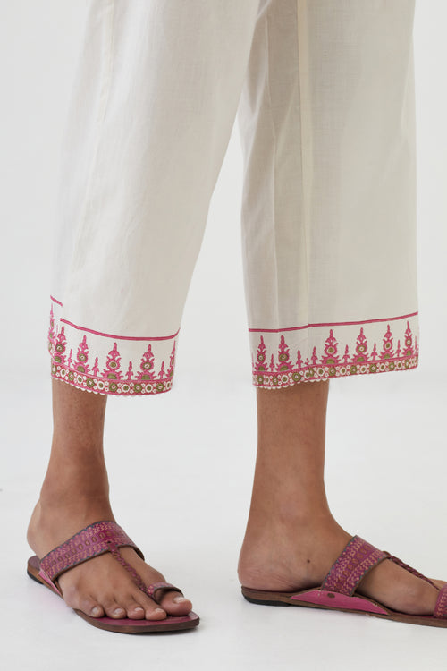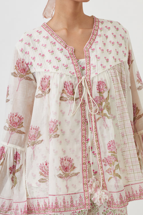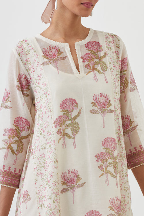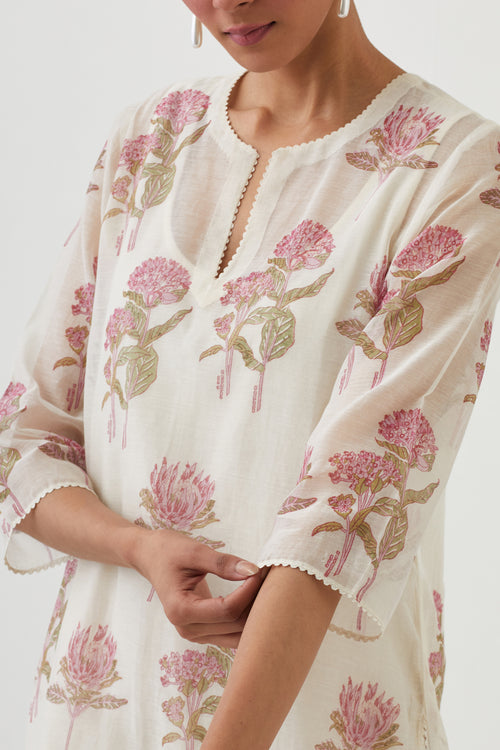 Pink colored hand block printed Cotton Chanderi dupatta.