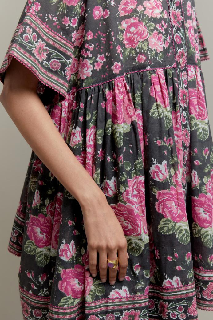 Black and Pink Cotton hand block printed short top with all-over Pink – Upavita icon