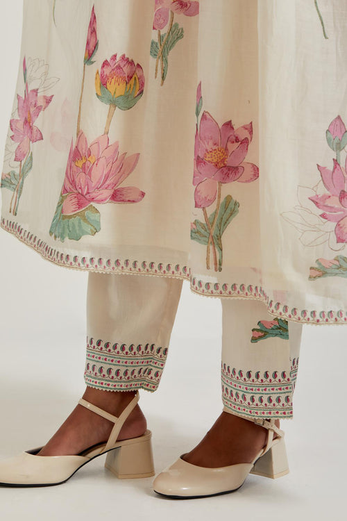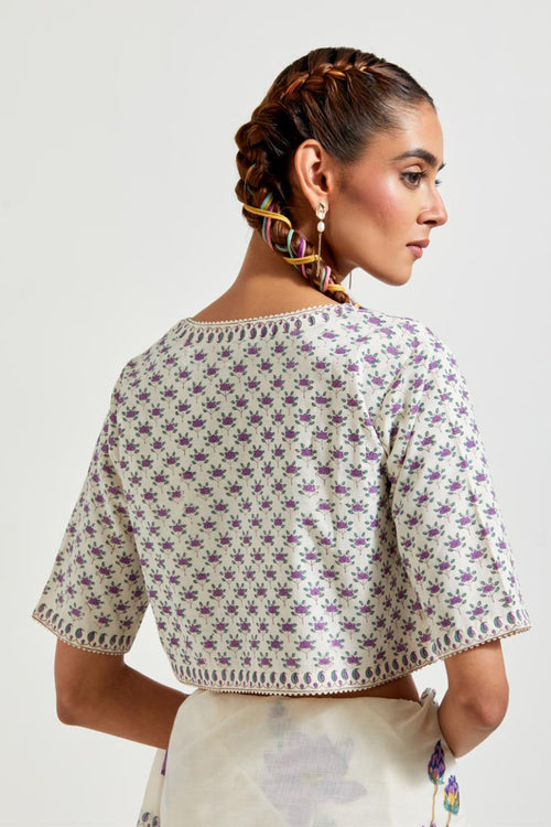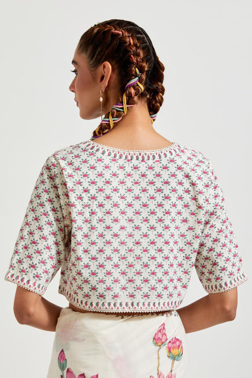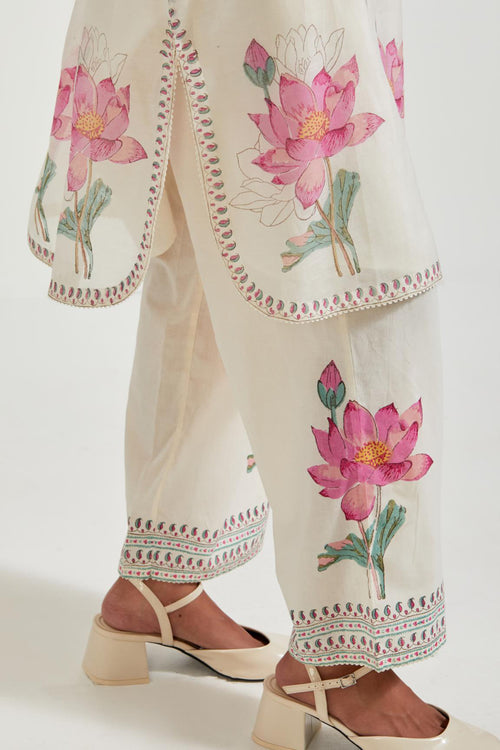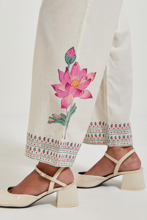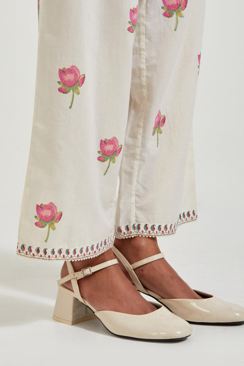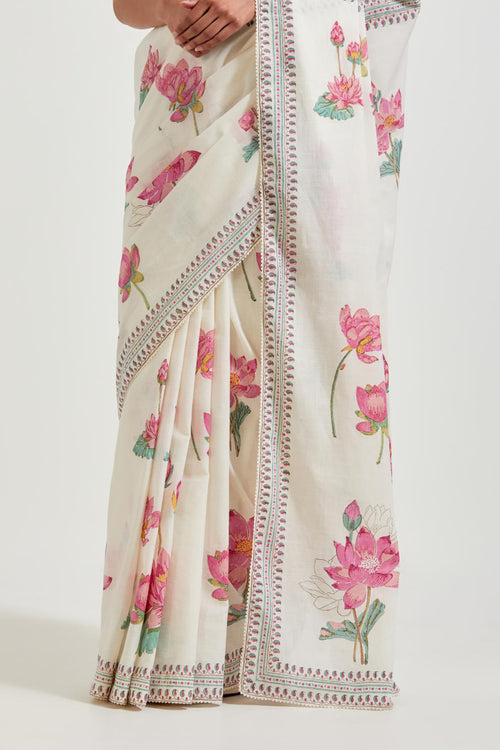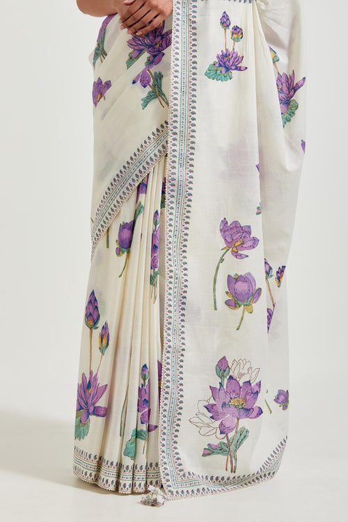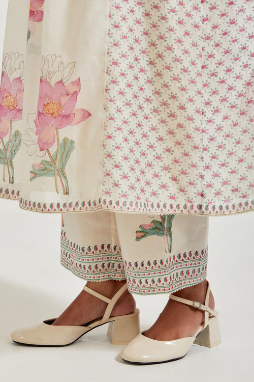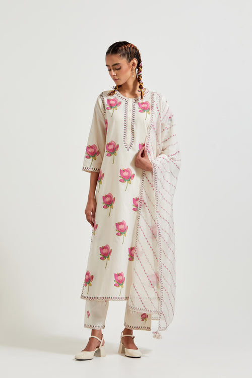 Off white cotton chanderi dupatta with all-over hand block print.