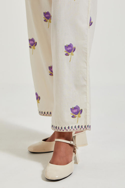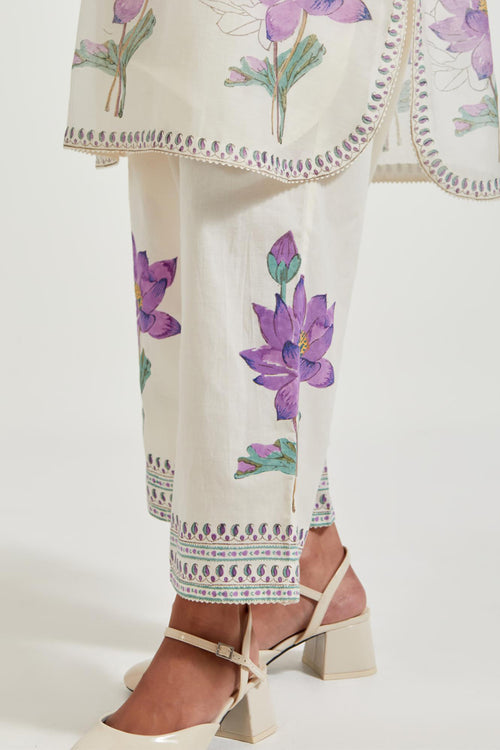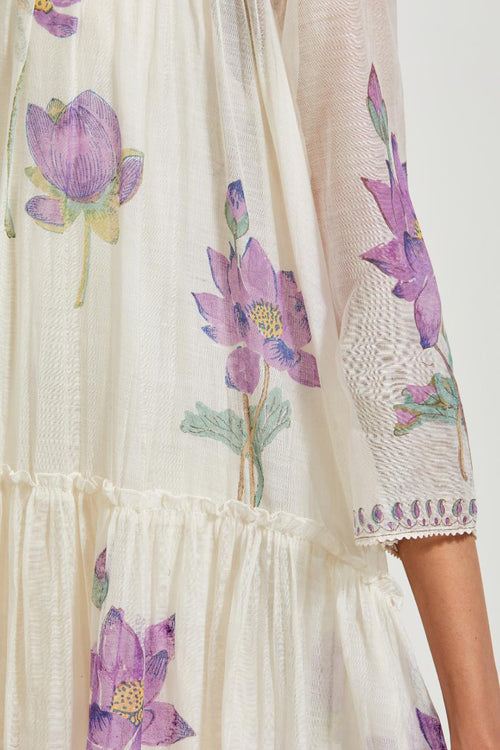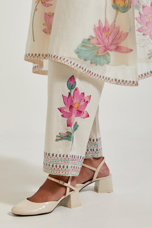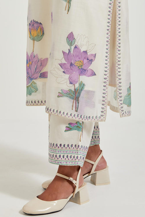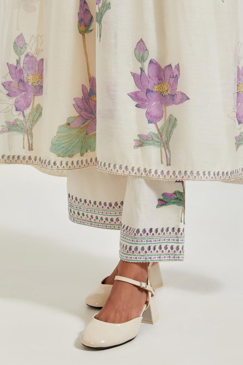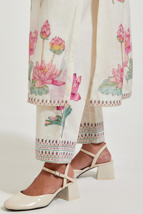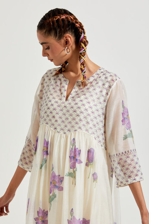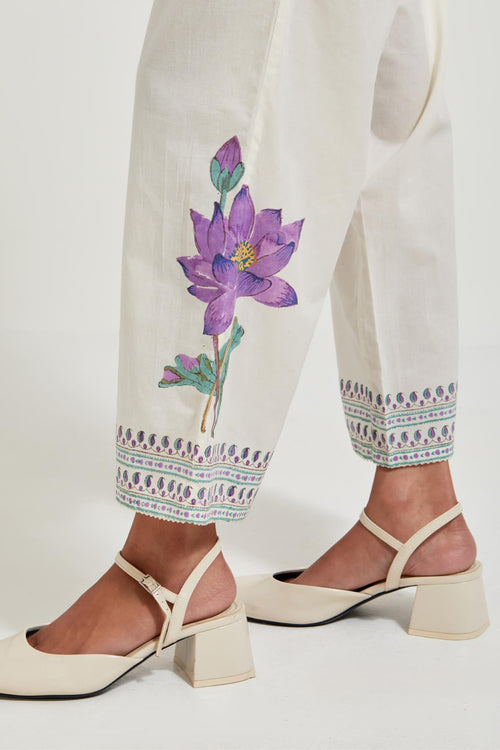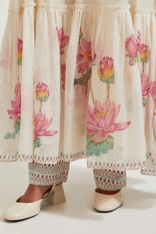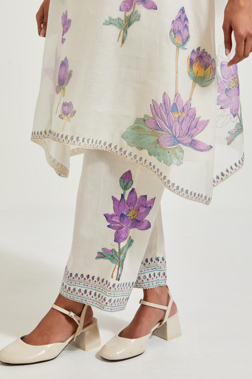 Off white cotton chanderi dupatta with all-over hand block print.